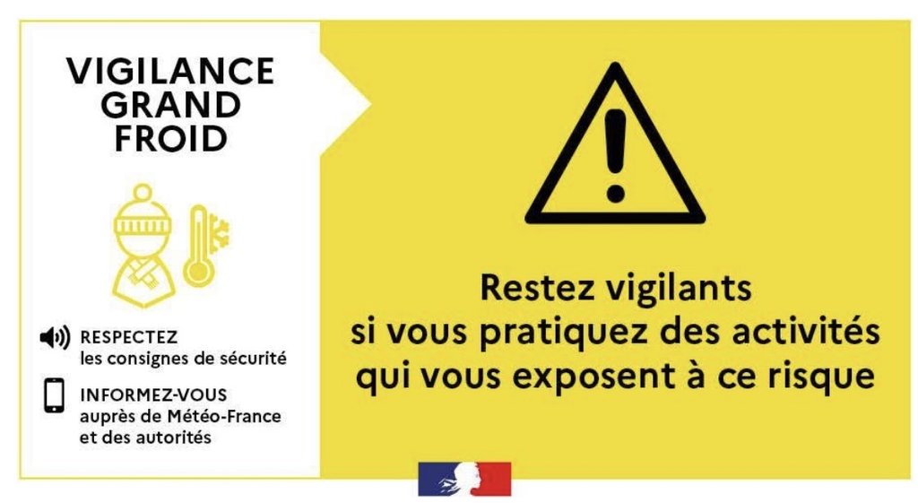❄️ Vigilance jaune grand froid en #Drôme à partir de ce samedi 3 janvier après-midi.
